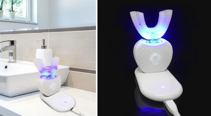 Mais EasySmile fait bien plus que simplement nettoyer vos dents. Elle émet également une lumière bleue UV qui blanchit les dents et élimine les bactéries, pour un sourire éclatant !